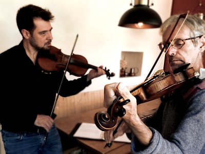 Le duo de violons BANG UP, composé de Patrice Bidaut (Electrons Libres) et de Mathieu Rosati, joue pour le concert et pour la danse, un répertoire principalement tourné vers le folk Anglais. Relativement méconnue en France, cette tradition se décline en pétillantes mélodies de Hornpipe, Morris, Polka, Contredanses, 6/8, Waltz... En bal, le programme est complété de quelques Bourrées, Rondeaux, Mazurkas..."